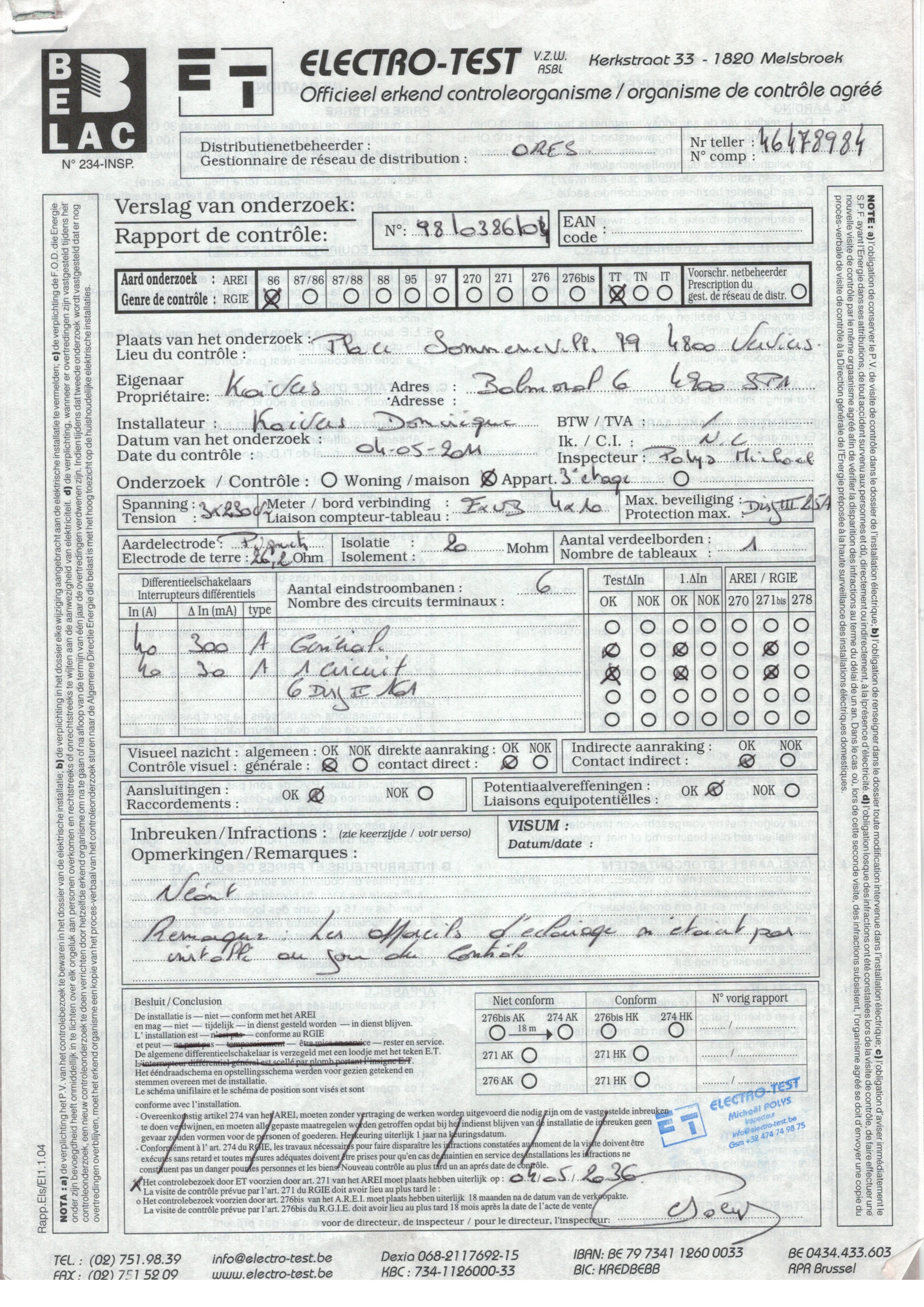 - Certificat D'électricité Oui, Conforme